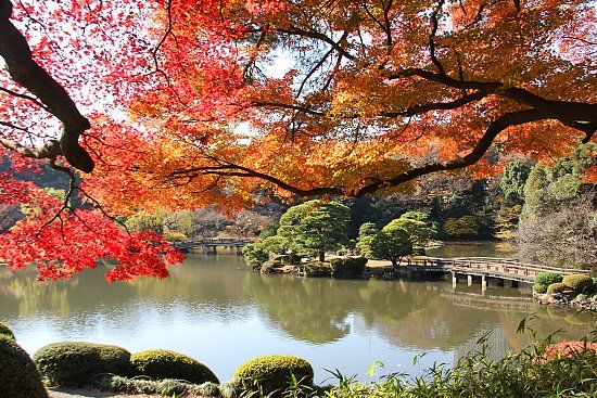 - Mùa thu (tháng 11 - đầu tháng 12): Sang thu, vườn quốc gia Shinjuku Gyoen trở thành một trong những địa điểm ngắm lá đỏ đẹp nhất Tokyo, mang đến khung cảnh lãng mạn không kém mùa xuân. Sắc đỏ, vàng, cam của lá phong phủ khắp công viên, đặc biệt ở khu vườn Nhật Bản, tạo nên bức tranh thiên nhiên tuyệt đẹp. Ngoài ra, Triển lãm Hoa Cúc diễn ra vào tháng 11 cũng là một điểm nhấn văn hóa đáng trải nghiệm.