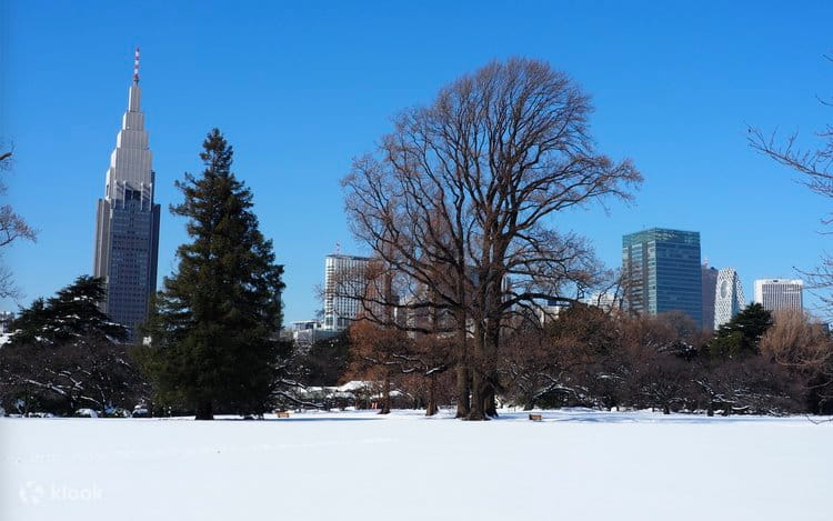 - Mùa đông (tháng 12 - tháng 2): Dù không rực rỡ như các mùa khác, Shinjuku Gyoen vẫn có sức hút riêng mang một vẻ đẹp tĩnh lặng và thanh bình dưới lớp sương giá hoặc tuyết nhẹ. Đây là thời điểm lý tưởng cho những ai muốn đi dạo, suy ngẫm hoặc chụp ảnh phong cảnh tối giản.